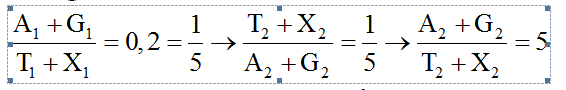 Ví dụ 1: Nếu như tỉ lệ A +G/T+X ở một mạch của chuỗi xoắn kép của phân tử ADN là 0,2 thì tỉ lệ đó ở sợi bổ sung là bao nhiêu?
