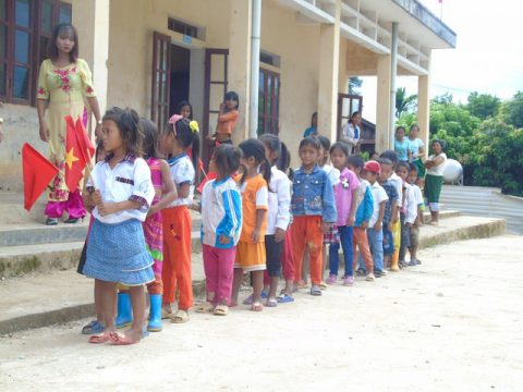 Ảnh 1: Các bé học sinh lớp 1 xếp hàng vào lớp trong ngày khai trường tại trường PTDT bán trú Tiểu học và THCS số 2 Trọng Hóa (Minh Hóa – Quảng Bình)