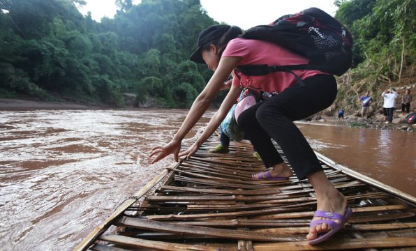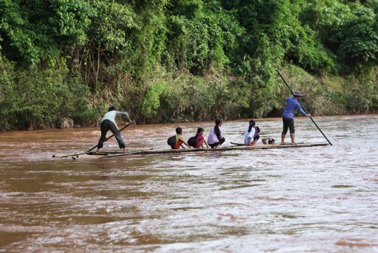Ảnh 2 + 3 : Thầy trò chèo bè vượt sông để dự lễ khai giảng năm học mới tại trường Pá Mỳ (Mường Nhé, Điện Biên)