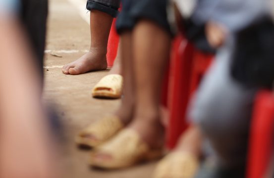 Ảnh 4: Hình ảnh em bé với đôi chân trần để lại nhiều cảm xúc và day dứt trong ngày lễ khai trường tại trường Pá Mỳ (Mường Nhé, Điện Biên)