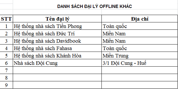 danh sách đại lý khác
