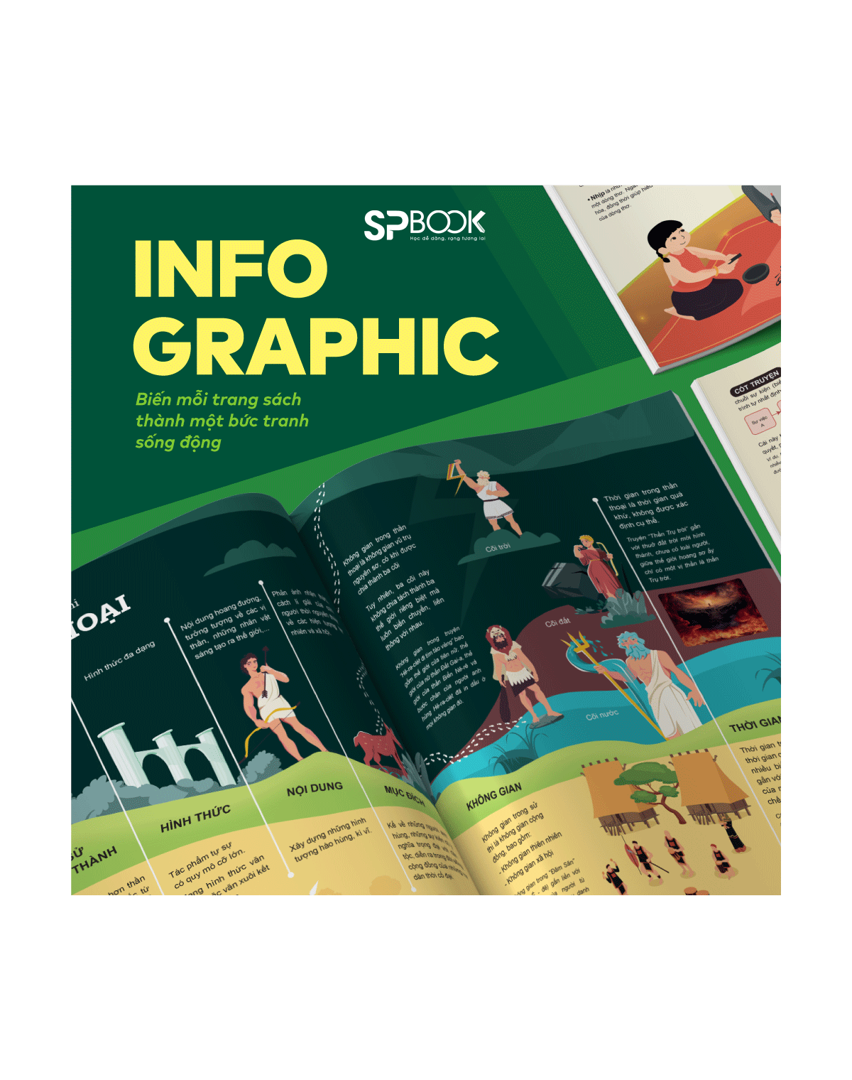 Đồ họa hóa thông tin: Hình ảnh sinh động, màu sắc bắt mắt, sơ đồ tư duy trực quan, infographic dễ hiểu được lồng ghép khoa học trong sách giúp con tiếp thu kiến thức một cách thuận lợi, ghi nhớ sâu và tư duy hiệu quả.
