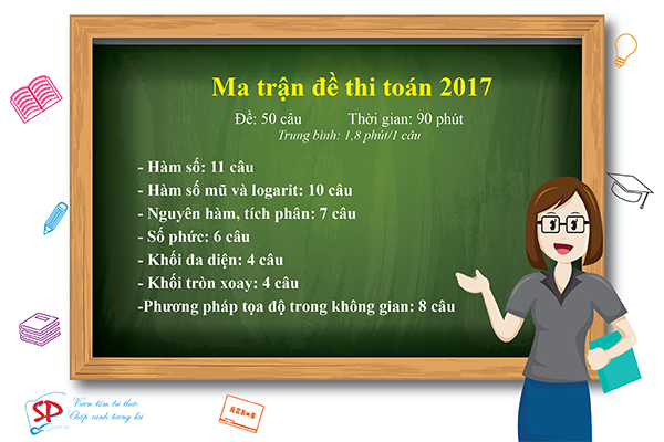 Để làm tốt điều đó, trước hết các em cần nắm được ma trận đề thi Toán năm 2017 mà Bộ đã công bố, xác định mục tiêu điểm số rõ ràng, và tập trung ôn luyện để đạt được điểm số đó.