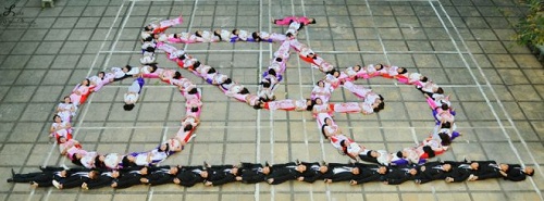 Quy tắc này chúng mình sẽ áp dụng khi chụp ảnh cùng cả lớp nhé. Ghép tên lớp, ghép hình trái tim hay hình gì đó, sẽ cực chất đấy.