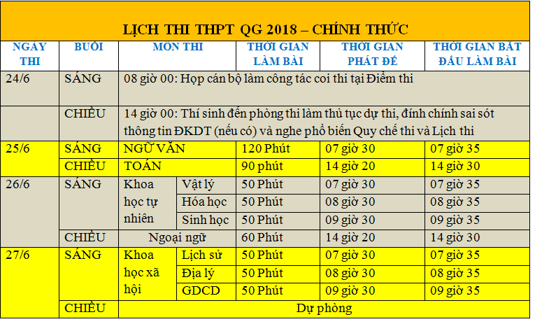 Lịch thi THPT Quốc gia năm 2018 cụ thể như sau:
