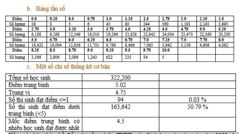Phổ điểm chi tiết tất cả các môn thi THPT quốc gia 2023 đối sánh với 2022