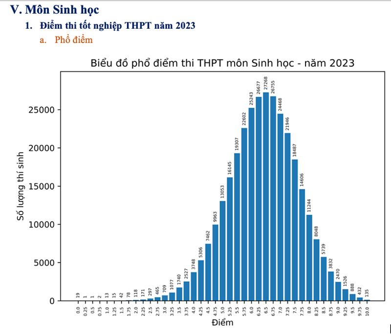 Phổ điểm chi tiết môn Sinh Học THPT quốc gia năm 2023 đối sánh với 2022