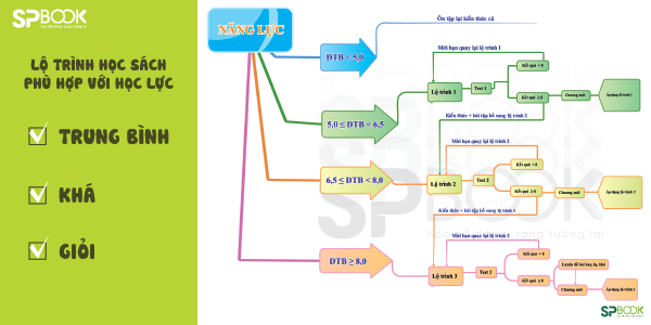 Lộ trình học sách được đính kèm với mỗi đầu sách của SPBook được coi là một sơ đồ chỉ đường trong Hệ sinh thái học dễ 6.0. “Sơ đồ chỉ đường” đó được biên soạn phù hợp với từng mức học lực từ Trung bình – Khá – Giỏi. Dựa vào đó, em sẽ không còn bị mất phương hướng, không còn băn khoănmình phải học như thế nào, phải bắt đầu từ đâu và mất bao nhiêu thời gian để có thể khai thác cuốn sách một cách hiệu quả nhất.