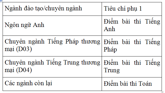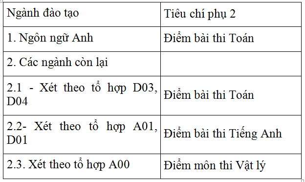 Sau khi sử dụng tiêu chí phụ 1, nếu số thí sinh trúng tuyển vẫn còn cao hơn so với chỉ tiêu quá 5%, Trường sử dụng tiêu chí phụ 2.