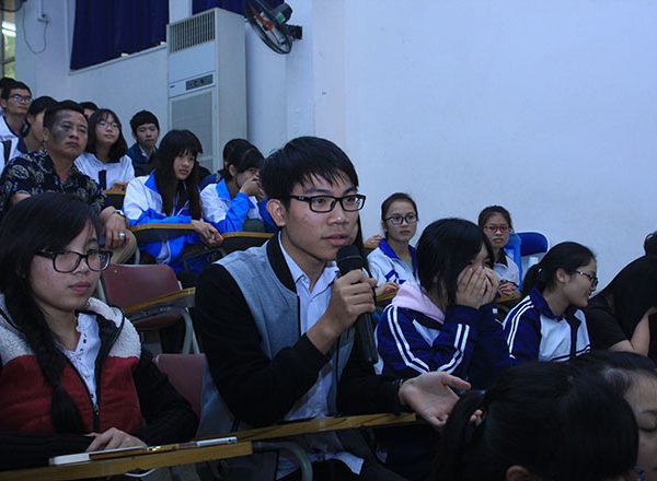 Học sinh đặt câu hỏi cho các khách mời tại sự kiện