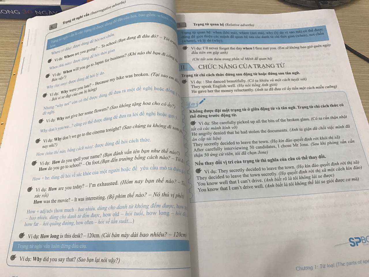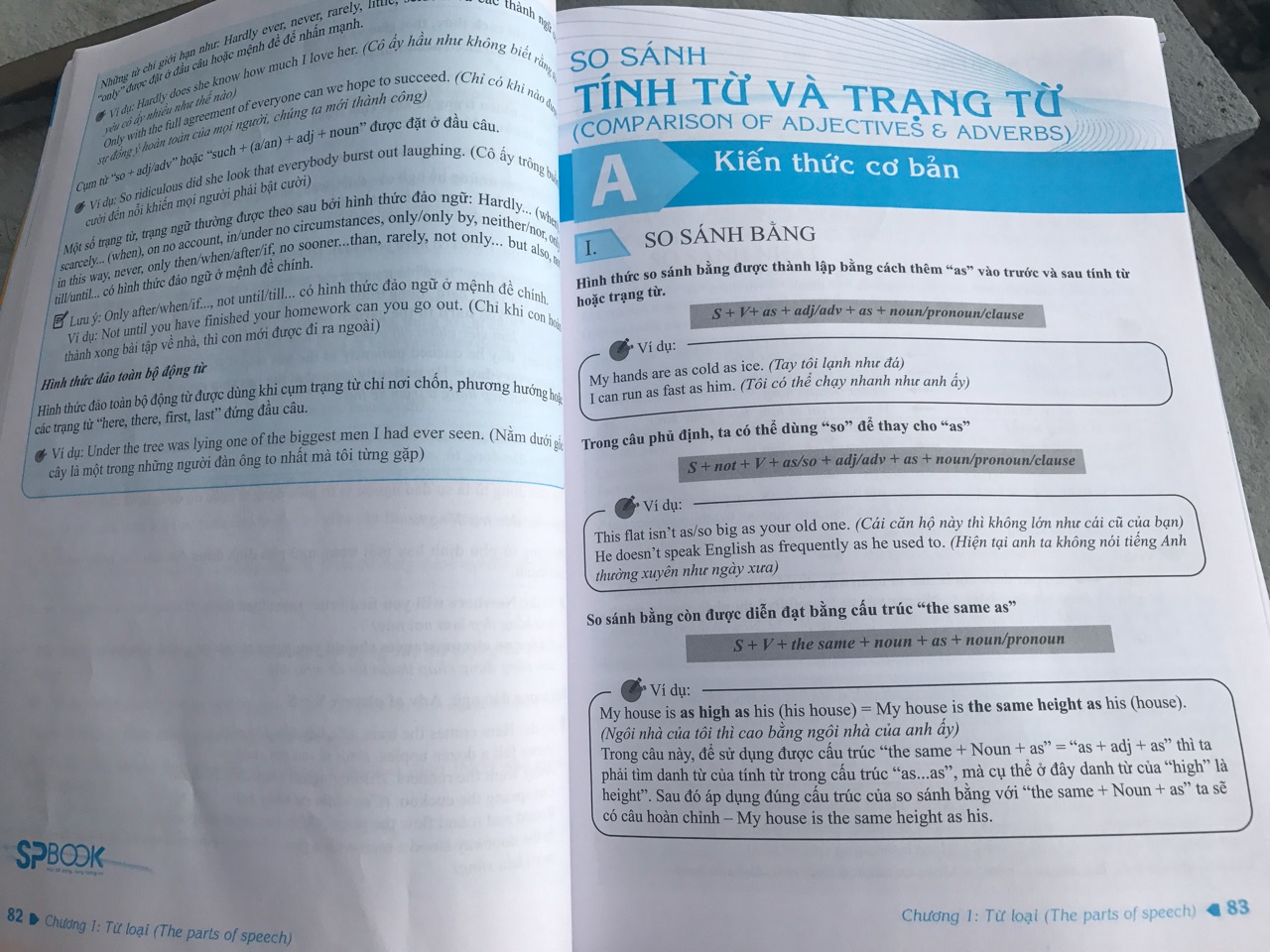 Ảnh chụp từ phần nội dung viết về trạng từ tiếng anh rất chi tiết trong sách Ngữ pháp và giải thích Ngữ pháp tiếng Anh cơ bản và nâng cao 20/80