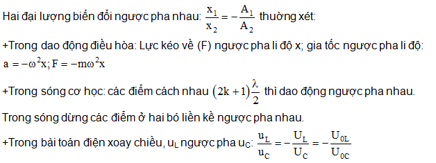 Loại 2: Công thức về các đại lượng biến đổi cùng pha, ngược pha nhau