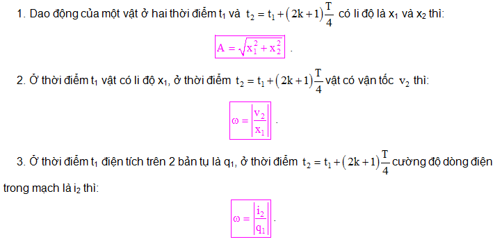 Loại 1: Công thức về các đại lượng biến đổi “vuông pha” với nhau.
